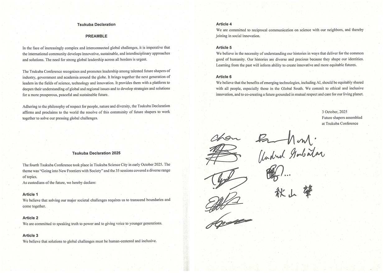 At the closing ceremony held on the final day, the Tsukuba Declaration 2025 was adopted by the Future Shapers.
